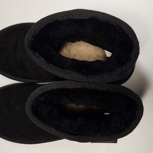 MINNETONKA Black Leather Sheepskin Lambswool Lined Ankle Boots Size 6