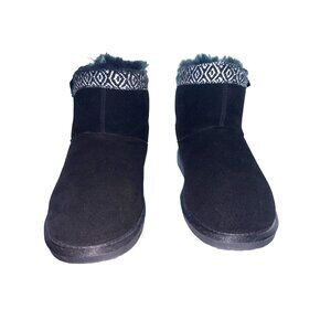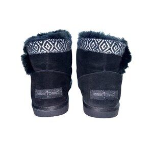 MINNETONKA Black Sheepskin Aztec Ankle Boots #85570 Size 8