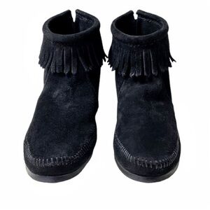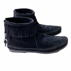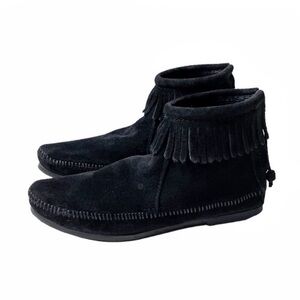 MINNETONKA Black Suede Back Zip Hard-sole Bootie Size 7