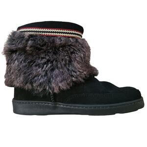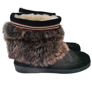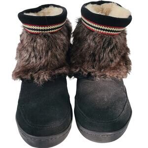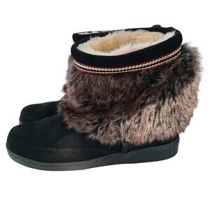 MINNETONKA Black Suede Faux Fur Sherpa Lined Ankle Moccasins 3779X Women's Size 9
