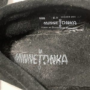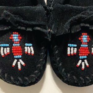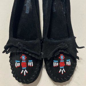 MINNETONKA Black Suede Moccasin Women's 6.5 Beading SOLED