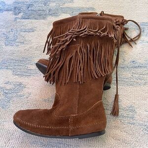 MINNETONKA FRINGE BOOTS ADJUSTABLE LACES ZIPPER BROWN SIZE 7 HANDMADE