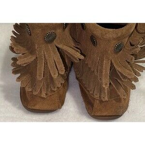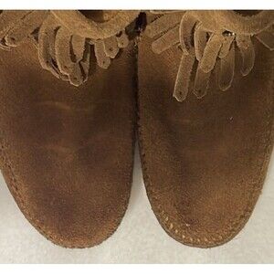 MINNETONKA Fringe Moccasins Boho Festival Brown Suede Boots Woman’s Size 7.5 US