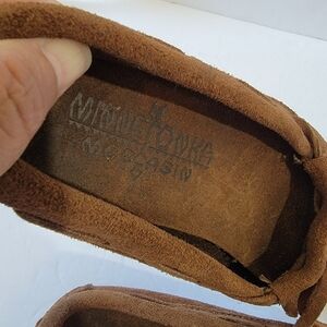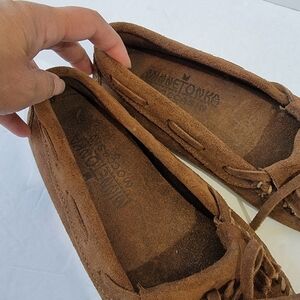 MINNETONKA Kilty Suede Mocassin Sz 7.5 Cognac Casual Comfy Everyday