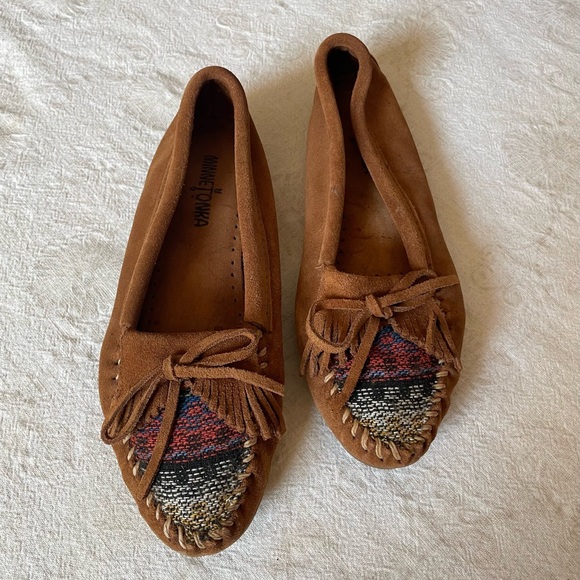 Women’s size 9.5 Genuine leather MINNETONKA Moccasins, in great used condition, $34