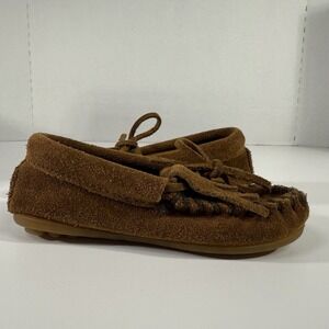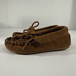 MINNETONKA Moccasins Toddler Size 7 Suede Leather Brown Boy Girl Unisex EUC