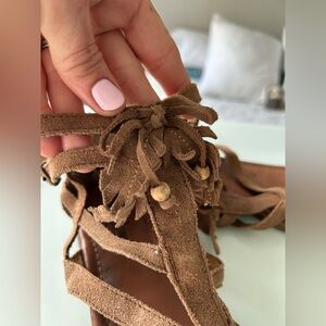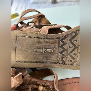 Brown leather MINNETONKA sandals.