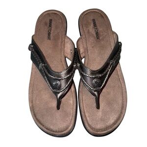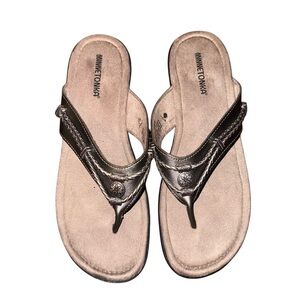 Minnetonka Silverthorne Leather Thong Pewter Silver Flip Flops Women's Size 11