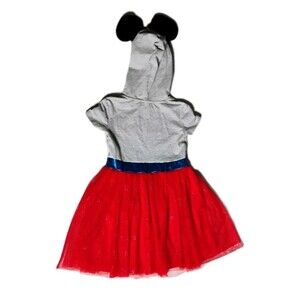 This Minnie Mouse Disney gray and red tulle dress with hood and ears in size small 4/5 is a colorful and fun option for young girls.