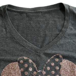 MINNIE MOUSE Disney Pink Glitter Sparkley Minnie Grey V-Neck T-shirt Women's M