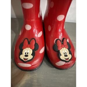 MINNIE MOUSE Rain Boots Girl’s Size 9 Disney Junior Red And White Polka Dot