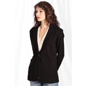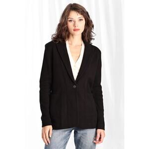 MINNIE ROSE Cotton Blend Boyfriend Blazer Black One Button Unlined Women's S