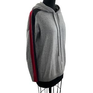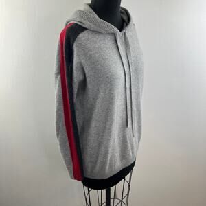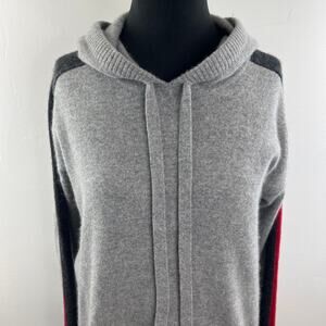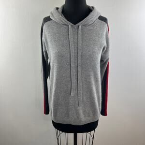 MINNIE ROSE Gray Cashmere Hoodie Long Sleeve Pullover Contrast Stripe Size S