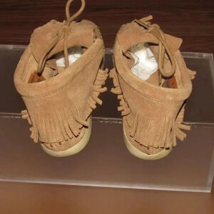 MINNIETONKA Women’s 457 Venice Ankle Booties Brown Suede Fringe Moccasin Shoes 6
