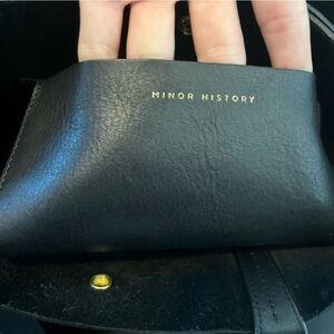 MINOR HISTORY Anthropologie Half Moon Tote Black Leather Semi Circle