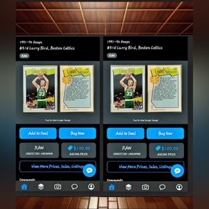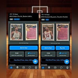 HI! I'M GETTING RID OF ALL MY BASKETBALL CARDS THAT I'VE HAD SINCE THE 1990S. THE CARDS ARE ALL IN "RAW" MINT TO NEAR MINT CONDITION I USED COLLX TO GRADE THEM! THESE EXACT SAME CARDS YOU WILL RECEIVE!:) I AM ALSO SELLING THEM ON OTHER PLATFORMS INCLUDING COLLX! ALL CARDS HAVE BEEN STORED IN A PROTECTIVE SLEEVES AND IN A PHOTO ALBUM. IT IS TIME FOR SOMEONE ELSE TO ENJOY THEM! :):):)