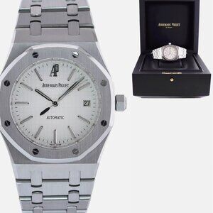 MINT Audemars Piguet Royal Oak White Dial 39mm Steel Date Watch Box