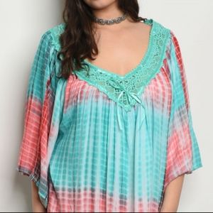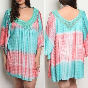 Short flutter sleeve tie dye dress! This has my two favorite colors for Spring & Summer Mint & Coral. Unique tie dye mini dress and can also be used as a great cover up for beach wear. Loose fit with a flow design and length is 34" to 35" depending on size. I also have this item in smaller sizes scroll through my closet to view!