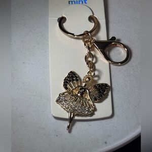 MINT Crystal Ballerina Keychain Charm - Clear & Gold Accent