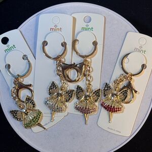 Bring a designer-inspired touch to your accessories with this stunning crystal-studded ballerina keychain charm from Mint. Featuring a luxurious pink and clear rhinestone design, this elegant charm is perfect for adding a pop of sparkle to your bag, keys, or zipper pull. The durable gold-tone clasp ensures it’s both stylish and functional, making it a chic addition to any collection.