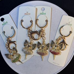 MINT Crystal Ballerina Keychain Charm - Green & Gold Accent