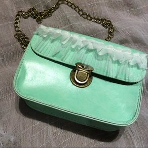 UNIQUE STYLES BOUTIQUE - New simple pastel mint green cross body snap purse white lace. 6" x 5" x 2" inches. Leather felt material with bronze chain long handle cross body. Very BoHo hippie love gypsy tribal simple bohemian sisters free style sweet honey Moda a International wow couture poetry American Retro vintage la miss spring the shine forever 21 American forever nasty gal Charlette Russe wet seal urban outfitters Mimi chica Antik ** More Designs go to "brand" under "Unique Styles purse"