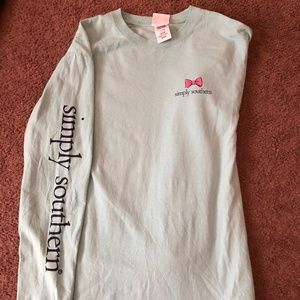 This super cute t-shirt is a size Medium and fits normal! I liked to fit this shirt with a pair of leggings but boyfriend jeans would look cute with it too! It looks greyish in the picture, but it's mint green! This is in excellent condition and hardly used!