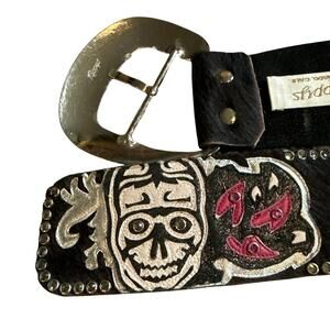 MINT Kippys Black Western Skeleton Rose Bling Leather Belt Fur Swarovski