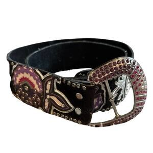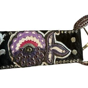 MINT Kippys Black Western Skeleton Rose Bling Leather Belt Fur Swarovski Size 36