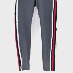 MINT LOVE Women's Size Small Grey Black Red Striped Compression Workout Leggings Athletic Athleisure Gym
