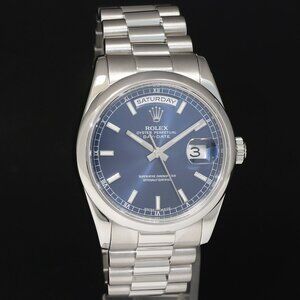 MINT! Men's Rolex Platinum President Blue Dial Watch