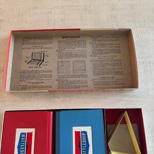 Vintage, mint, 1st Edition 1967 Battleship with original stereotypical (for its time) cover showing father and son playing Battleship while mother and daughter in kitchen washing dishes but enjoying the men's fun! 100% complete. Collectible with almost no box wear and minimal age discoloration. Box is intact. See photos for details.