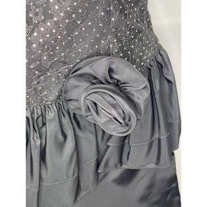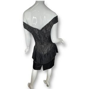 MINT! Vintage Rampage Lace Glitter Off-the-Shoulder Dress Sz 9 Peplum Rosette