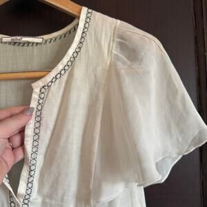 MINT by JODI ARNOLD | Embroidered Cotton Silk Eyelet Babydoll Split Neck Tee | 2