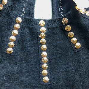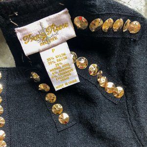 MINT vintage Tracy Reese black knitted short sleeve top with gold trim Sz P