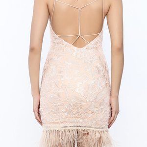 MINUET Lace feather trim dress