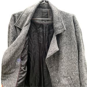 Fully lined. Wrist warmer cuffs to keep the cold out. Missing a button (see photos). Pockets sewn shut. 20% wool/70% polyester.