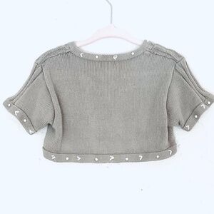 MIOMIO Embroidered Knit Crop Short Sleeve Cardingan Taupe Kids Sz 4