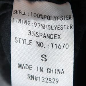 MATERIAL: 100%POLYESTER LINING: 97% POLYESTER 3% SPANDEX