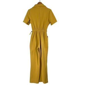 MIRACLE EYE The California Shake Jumpsuit in Mustard. Rare color and no longer available online. The California Shake Jumpsuit combines a vintage-inspired cut with contemporary comfort. It can be worn effortlessly, perfect for any day. Its short sleeves and dreamy detailing make this one-piece a must-have. Form-fitting, makes your booty look A+. Adjustable belt with vintage brass loops to ensure a perfect fit. Two front hand pockets + elasticized waist back. Fabric: Stretch poly-rib ottoman. Ultra soft and comfortable.