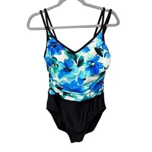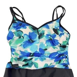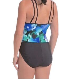 MIRACLESUIT Bethany Fauxkini Swimsuit Java Floral Blue Black One Piece