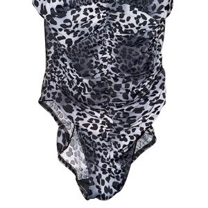 MIRACLESUIT Kitty Galore Leopard Print Black Gray One Piece Ruched Swimsuit 14