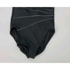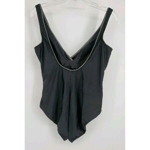 MIRACLESUIT One Piece Swimsuit Criss Cross Front Sz 16 Black w/ Black White Trim
