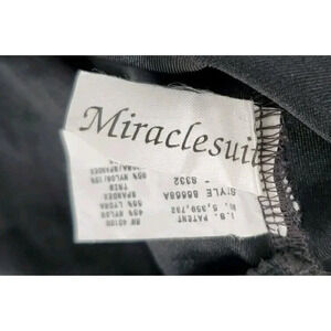 Up for Consideration is this (Vintage ??) MIRACLESUIT Women's One Piece Swimsuit Criss Cross Front Black with Black White Trim /Detailing on Straps and across Front. COMPOSITION: 45% Nylon / 55% Spandex ~ Hand Wash Cool Made in USA. Pictures are of actual item and also part of Description.