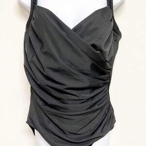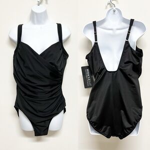 MIRACLESUIT Womens Plus Black Sanibel One Piece Sculpted Ruched Swimsuit Size 18