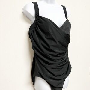 MIRACLESUIT Womens Plus Black Sanibel One Piece Sculpted Ruched Swimsuit Size 18