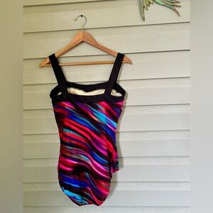 MIRACLESUIT rainbow striped one piece swimsuit slimming bathing suit sz 12 EUC