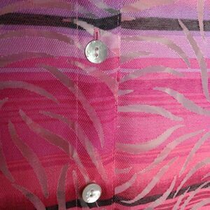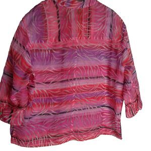 MIRASOL Button Up Blouse Women’s L Rayon Linen Blend Tropical Sunset Top Sheer