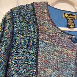MIRASOL Women’s Large Blazer Cardigan Blue Artsy Boho Textured Versatile