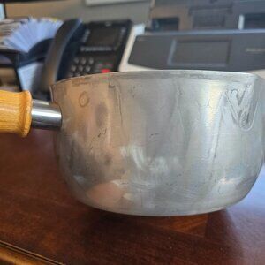 MIRRO 2 Quart Qt. 1.9L 8" Saucepan Pan Pot Nonstick, Wood Handle W/ Hook USA 54221-1330. One small mark on the inside of the pan on the non-stick at the top, as shown. ALl other in good pre-loved condition! Wear marks on the outside as shown.
